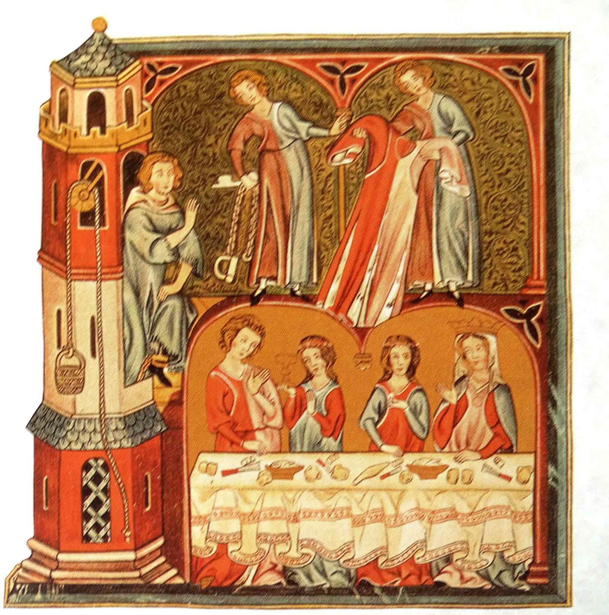 Замок знаходиться на рубежі часів, коли лицарство досягло свого зеніту, і на горизонті історії вже з'явилася епоха Відродження. Стіни замку, меблі та начиння різних часів допоможуть нам підняти завісу часу. Вони розкажуть нам, як змінювалася культура. Мандруючи в часі, переходячи із зали в зал, ми познайомимося з історією кухні та культурою поведінки за столом, історією моди, меблів, нравів, звичаїв.