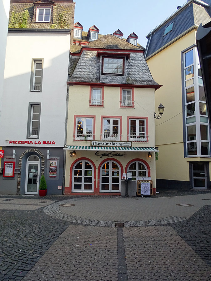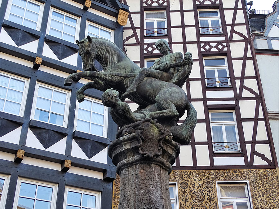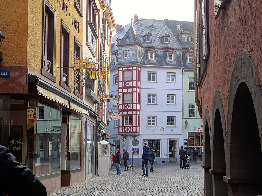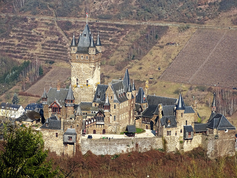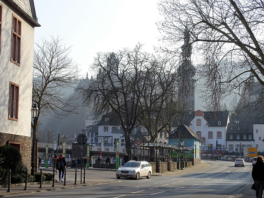 Кохем – втілення романтичного міста у басейні Мозеля. Римляни, які відвоювали Кохем у кельтів (I ст.н.е.), назвали його Вілла Кохума. Замок Райнсбург (Reinsburg) – XI ст. Розкішна набережна, звідки Мозель був перегороджений ланцюгом. Так, чого не зробиш, щоб підвищити мито на вино! Барочна церква Св. Мартіна пишається своїми вітражами у стилі Марка Шагала. Ратушна площа, криниця «Лицар», відвідування замку, де в середні віки стратили відьом, а місцевий граф у XIII столітті вбив свою дружину. Ревнивець! Детективна історія. Хто з Вас мріє про лаврів Шекспіра? Прийміть сюжет.
