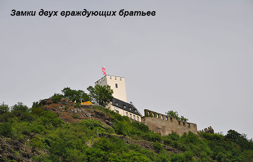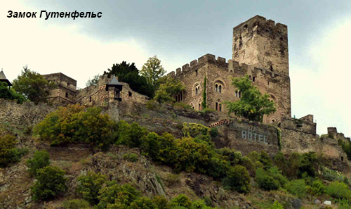 Замок Штольсенфельс (Stolzenfels), блискучі сонячні жовті на фоні зеленого листя. І Ланек (Lahneck) зі своєю похмурою історією судилища над відьмами, і як можна було виправдатися звинуваченій... І, звісно, замок-музей Марксбург. Відвідування його з досвідченим гідом розповість про сиву старовину, налякає камерою тортур, зачарує краєвидами з вікон, збройна палата, замкова кухня, винний льох, та мало чим може здивувати замок-музей. Чому замки Миша (Maus) і Кішка (Katz) мають такі дивні назви?! І, нарешті, оспівану легендами Рейна та великим Гейне Лореляй (Loreley). Кохання, підступність, смерть. Чи не це супроводжує людське життя?