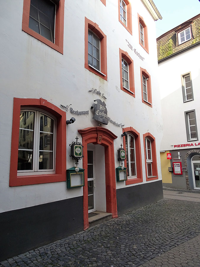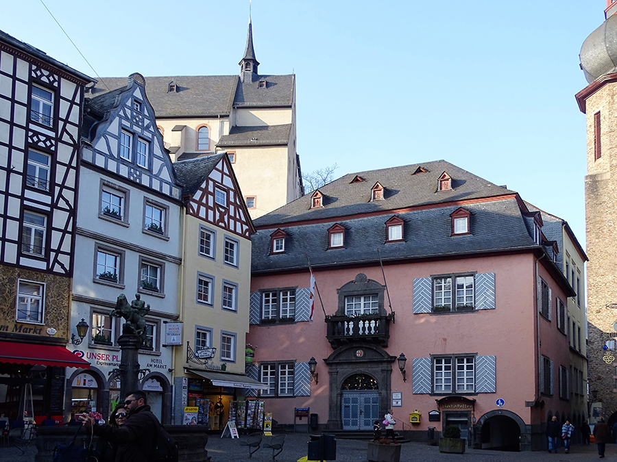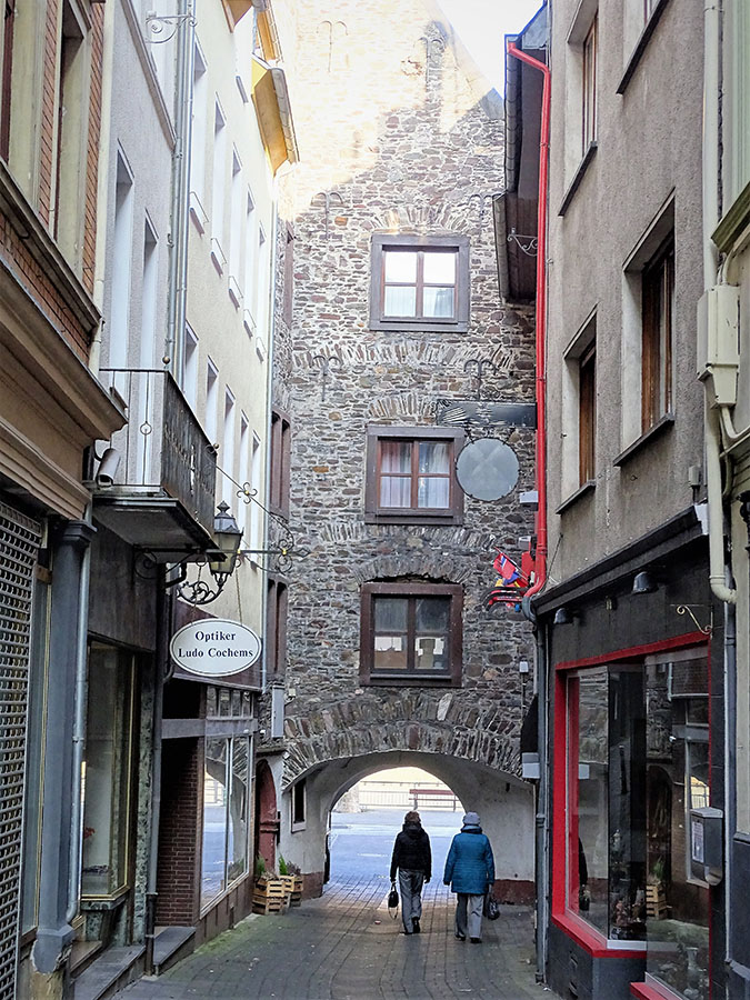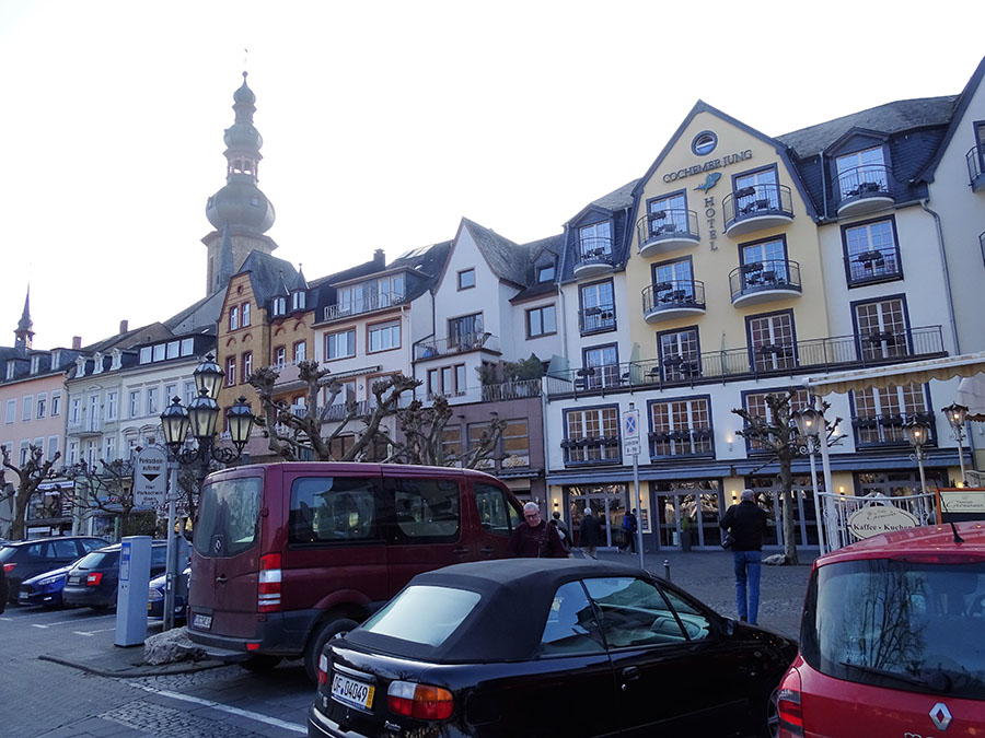 Кохем – втілення романтичного міста у басейні Мозеля. Римляни, які відвоювали Кохем у кельтів (I ст.н.е.), назвали його Вілла Кохума. Замок Райнсбург (Reinsburg) – XI ст. Розкішна набережна, звідки Мозель був перегороджений ланцюгом. Так, чого не зробиш, щоб підвищити мито на вино! Барочна церква Св. Мартіна пишається своїми вітражами у стилі Марка Шагала. Ратушна площа, криниця «Лицар», відвідування замку, де в середні віки стратили відьом, а місцевий граф у XIII столітті вбив свою дружину. Ревнивець! Детективна історія. Хто з Вас мріє про лаврів Шекспіра? Прийміть сюжет.