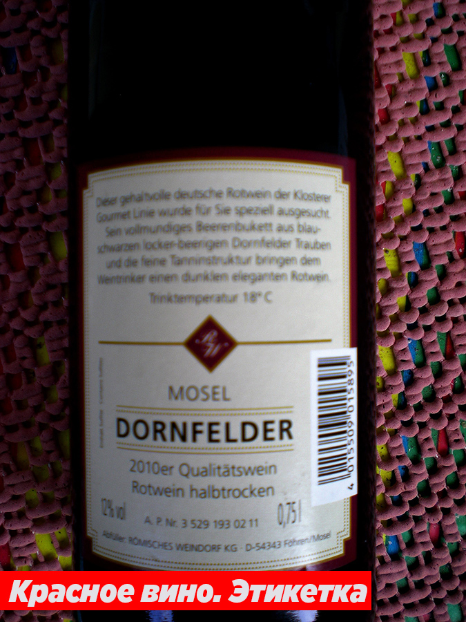 Крім усього тексту, властивого, мабуть, кожному вину- назву вина або виноробного будинку, адреси і навіть телефону на кожній етикетці обов'язково є акцизний номер: латинські літери A.P. багатозначний цифровий номер, який 12 років, так, саме такий термін зберігання вина, не повторюватиметься у реєстрі акцизних номерів.