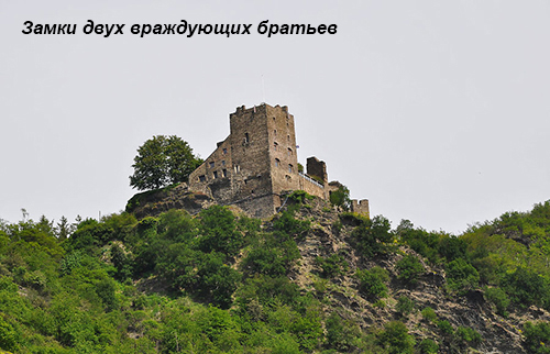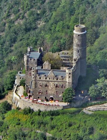 Здесь, между городами Кобленц и Рюдерсхаим в области названной ЮНЕСКО «Мировым культурным наследием» приходилось в среднем на каждые 2,5 km один замок. Более 40 еще частично сохранены. Многие романтично возвышаются на берегах и открыты для посещения. Но многие из этих замков «Новостройки» 19 и 20 столетья. Они были превращены в руины, в основной массе во время 30- летней войны со шведами или по вине Людовика XIV, в1689 году во время войны за престол или просто в процессе использования и окончательного упадка.
