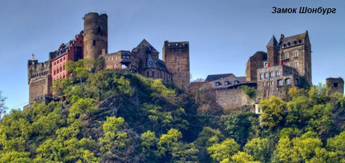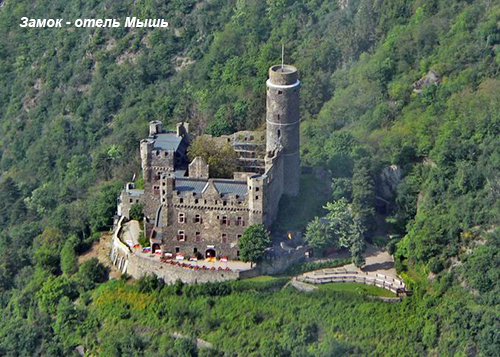 Замок Штольсенфельс (Stolzenfels), блискучі сонячні жовті на фоні зеленого листя. І Ланек (Lahneck) зі своєю похмурою історією судилища над відьмами, і як можна було виправдатися звинуваченій... І, звісно, замок-музей Марксбург. Відвідування його з досвідченим гідом розповість про сиву старовину, налякає камерою тортур, зачарує краєвидами з вікон, збройна палата, замкова кухня, винний льох, та мало чим може здивувати замок-музей. Чому замки Миша (Maus) і Кішка (Katz) мають такі дивні назви?! І, нарешті, оспівану легендами Рейна та великим Гейне Лореляй (Loreley). Кохання, підступність, смерть. Чи не це супроводжує людське життя?